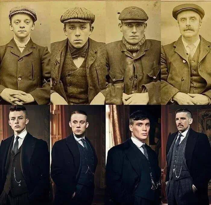 «Острые козырьки» действительно была печально известной уличной бандой из Бирмингема, которая действовала с 1890-х по 1920-е годы. Преступная группа, состоявшая в основном из представителей рабочего класса, пришла к власти, как и многие подобные объединения, через рэкет, убийства и азартные игры. На пике своего развития банда насчитывала десятки тысяч членов, хотя её численность колебалась по мере смены альянсов. Некоторые из самых юных участников были всего лишь 12-летними подростками. Что касается названия, существует две версии. Первая, отражённая в сериале, гласит, что название «Острые козырьки» произошло от их кепок с плоскими козырьками, в которые были вшиты бритвенные лезвия. Эти кепки служили не просто элементом моды, но и смертоносным оружием, использовавшимся в жестоких столкновениях. Участники группы били своих жертв головой или наносили им удары скрытыми лезвиями, временно ослепляя их. Вторая версия, также имеющая право на существование, предполагает, что название произошл