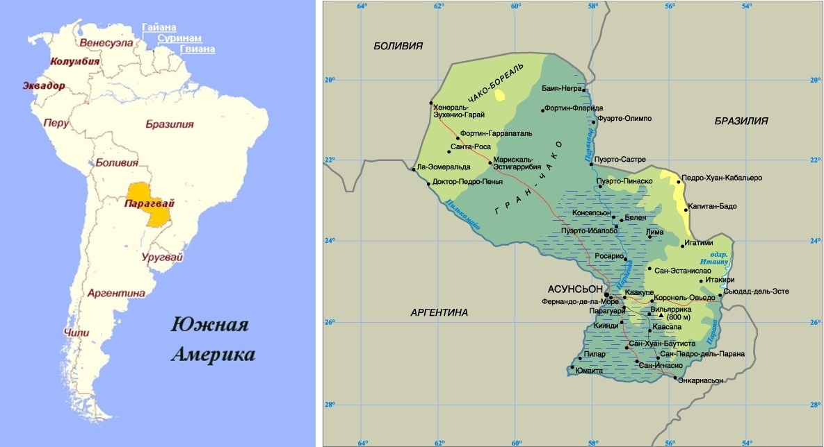 7. Территория Парагвая разделена на две большие части по реке Парана: восточная более населённая и развитая, западная — Чако — полупустынная и менее освоенная.