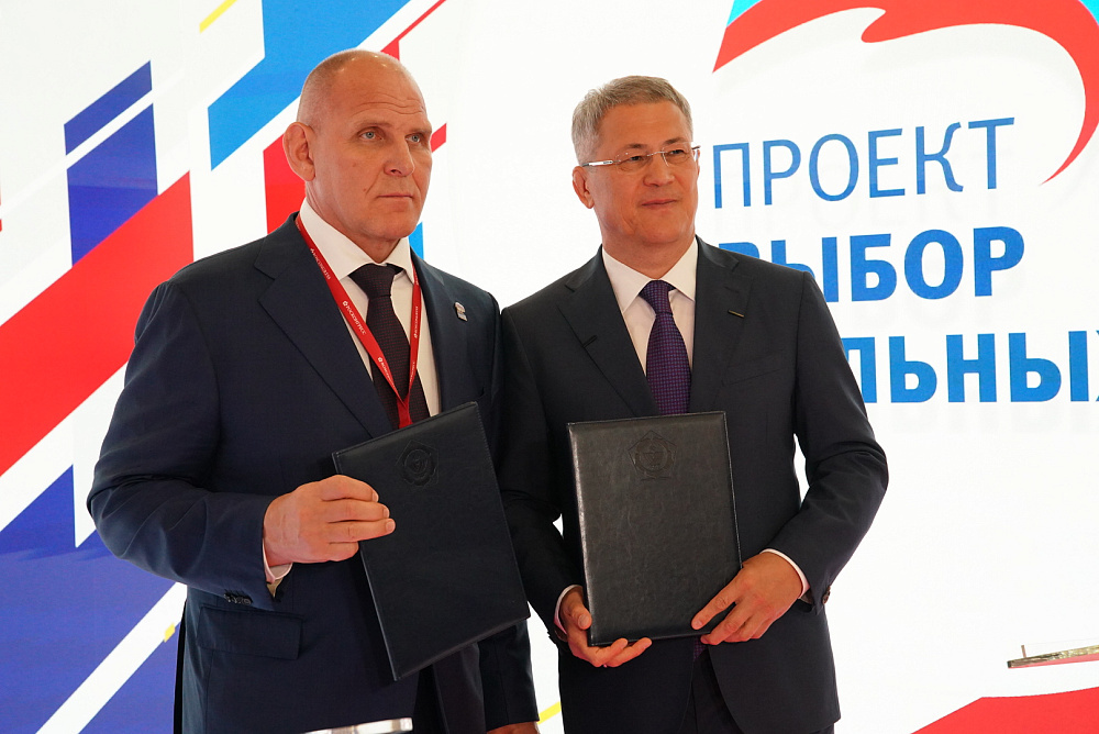 На Петербургском международном экономическом форуме соглашение о присоединении республики к партпроекту «Выбор сильных» подписали Секретарь реготделения «Единой России», Глава Башкортостана Радий Хабиров и координатор партпроекта, Герой России, трёхкратный олимпийский чемпион Александр Карелин.