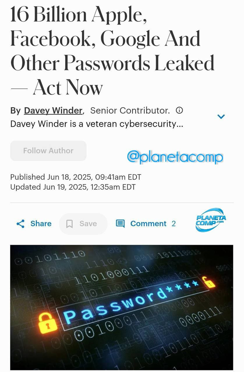 Forbes сообщает, что 16 миллиардов паролей от Apple, Google, Instagram*, Facebooк* и Telegram слили в сеть.