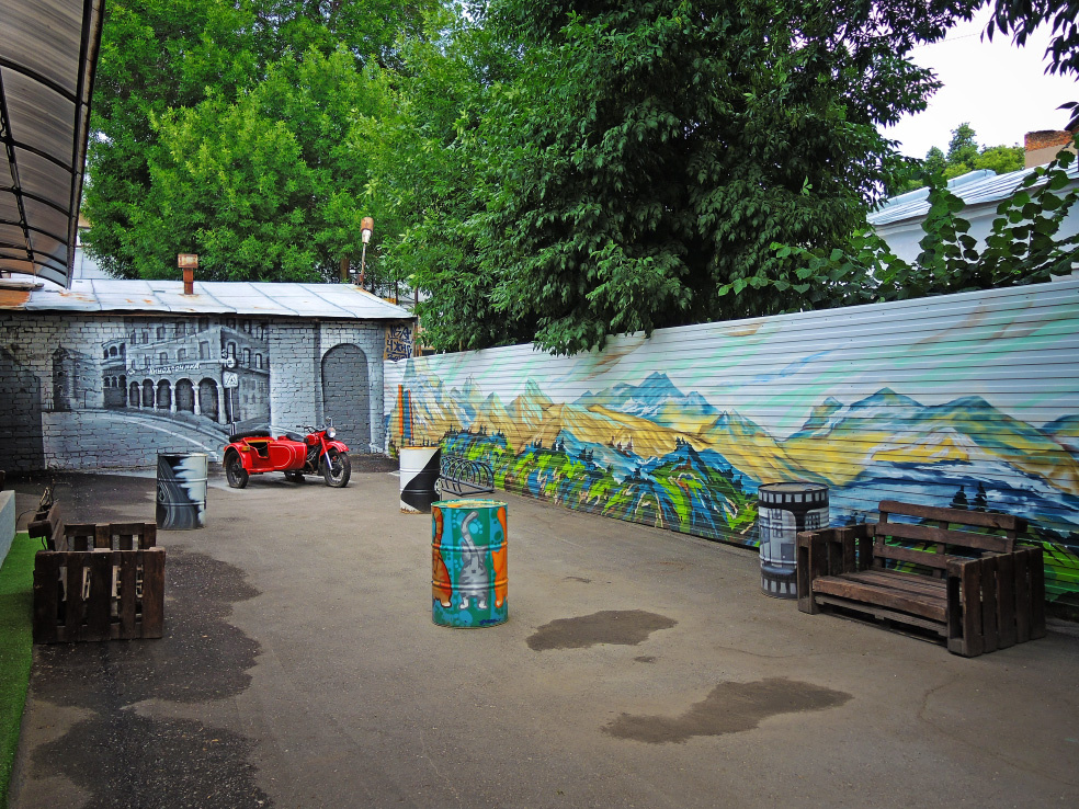 Продолжаю серию обзоров образцов самарского уличного искусства. На этот раз приглашаю во двор дома 66 по улице Молодогвардейской. В последние годы в историческом центре города стали популярными так называемые арт-кластеры. Как правило, располагаются они во дворах старых домов или в брошенных промышленных зданиях. Это своеобразное переосмысление привычных нам торгово-развлекательных центров. По наполнению они похожи - в таких пространствах также можно найти бутики, кафе и художественные галереи. Но, в отличие от рассчитанных на большое количество посетителей моллов, здесь создаётся атмосфера камерности и уюта в стиле лофт. Один из таких кластеров и разместился в доме 66 по Молодогвардейской. В советские годы в этом доме работала студия Самарской (Куйбышевской) кинохроники, крупнейшая в Поволжье, долгое время вообще единственная. Сейчас в доме располагаются несколько кафе (в том числе котокафе), салон красоты, мастерские дизайнеров, скалодром (не совсем понятно, как он тут поместился, но