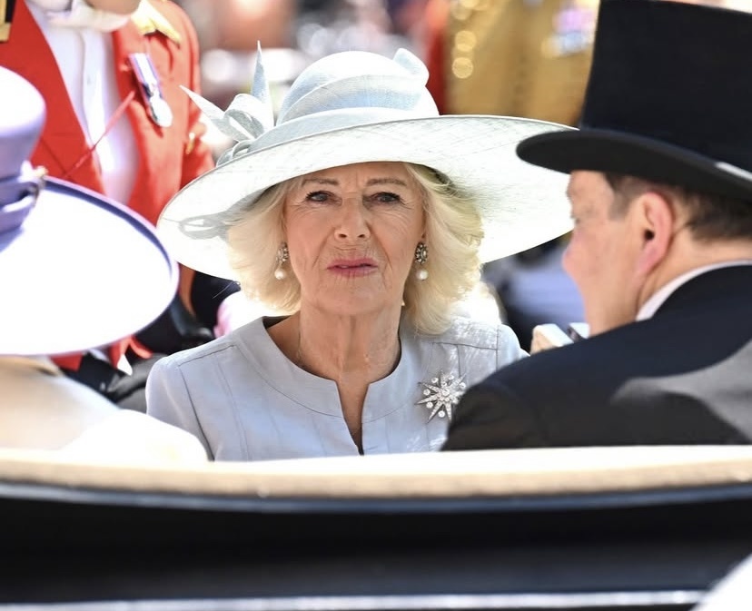 Третий день королевских скачек опять стал триумфом Камиллы. В экипаже она с королем, чуть подальше выезжают следом Беатрис с Эдоардо. Стоит ли говорить, что шляпка от Филиппа Трейси, платьишко с рукавом три четверти от Фионы Клэр, а вот брошь бриллиантовая опять из королевской шкатулки? Это знаменитая брошь Звезда Жардин . Бриллиантовая звезда создана в самом конце 19 века и преподнесена королеве от леди Жардин.Все королевы ее любили. Елизавета Вторая в особенности. Выезд только начался, так что кто из гостей будет сегодня в королевской ложе ипподрома в Аскоте- увидим позднее. Ясно одно: все родственники нынешней королевы не забудут появиться. В первый день это ее дочь Лора и сестра Аннабель. Сегодня в экипажах также принцесса Анна и сэр Тимоти. А также герцог и герцогиня Эдинбургские, Зара и Майк Тиндалл, принцесса Зара Ага Хан, маркиз и маркиза Солсбери, а также принц и принцесса Кастель-Вискардо. Приятнее всех впечатление от Зары Тиндалл. Интересно выглядит в шляпке от