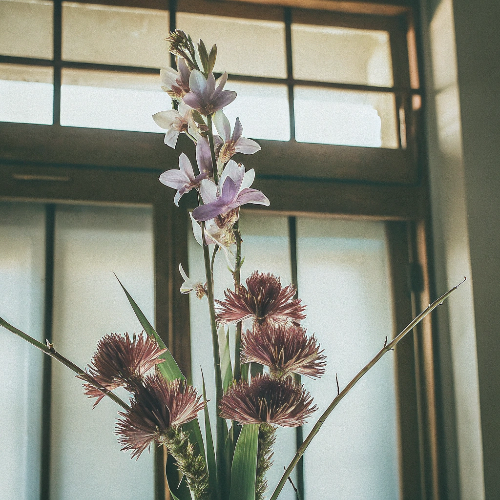 Флористика в этом направлении уделяет внимание и основам — для фиксации формы используются бамбук, лозы или проволока. Гармония текстур и цвета здесь важна, ведь перегруз композиции нарушит восприятие. Чёткий дизайн букетов требует аккуратности и чувства меры.