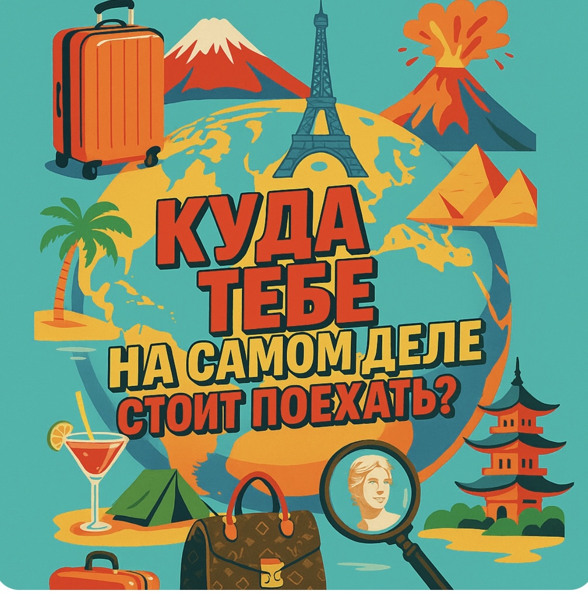 Вы уверены, что знаете, где хотите отдыхать? Давайте проверим! Этот тест раскроет ваши тайные туристические желания через неожиданные вопросы. Никаких скучных «пляж или горы».