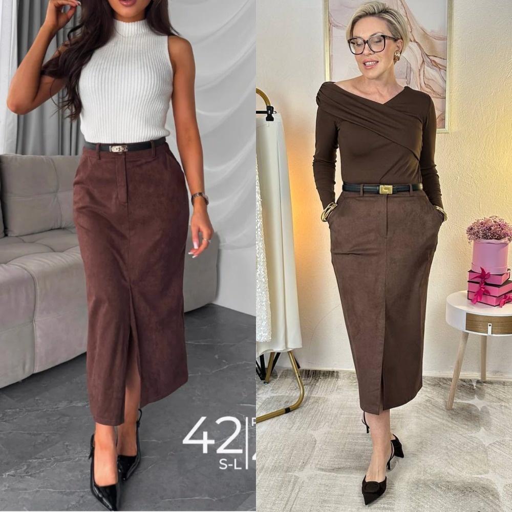 Здравствуйте, дорогие читатели! Меня зовут Ирина, я - стилист, и на этом канале показываю одежду и аксессуары с Wildberries такими, как они есть, то есть, из серии "ожидание/реальность". Мои параметры: рост 169 см, вес 67 кг, 94-74-100 ✅Основной канал: Стильно - не значит дорого! Ставьте лайк в поддержку канала, и давайте смотреть на мою сегодняшнюю покупку. Недавно на ВБ я нашла идеальную юбку для работы и повседневной носки. Эта миди с разрезом сидит просто прекрасно — высокая посадка отлично подчеркивает талию, а прямой крой аккуратно облегает фигуру. Ткань плотная, приятная на ощупь (состав: вискоза, полиэстер, эластан), хорошо тянется и совсем не мнется. Юбка без подклада, но это не проблема — материал достаточно плотный. Застежка на молнию и пуговицу удобная, ничего не топорщится. Цвет — насыщенный шоколадный, выглядит дорого. Я взяла 48-й размер — юбка села на меня идеально. Листайте карусель с моими идеями образов с этой юбкой: Если вам нужен артикул юбки, ставьте + в коммента