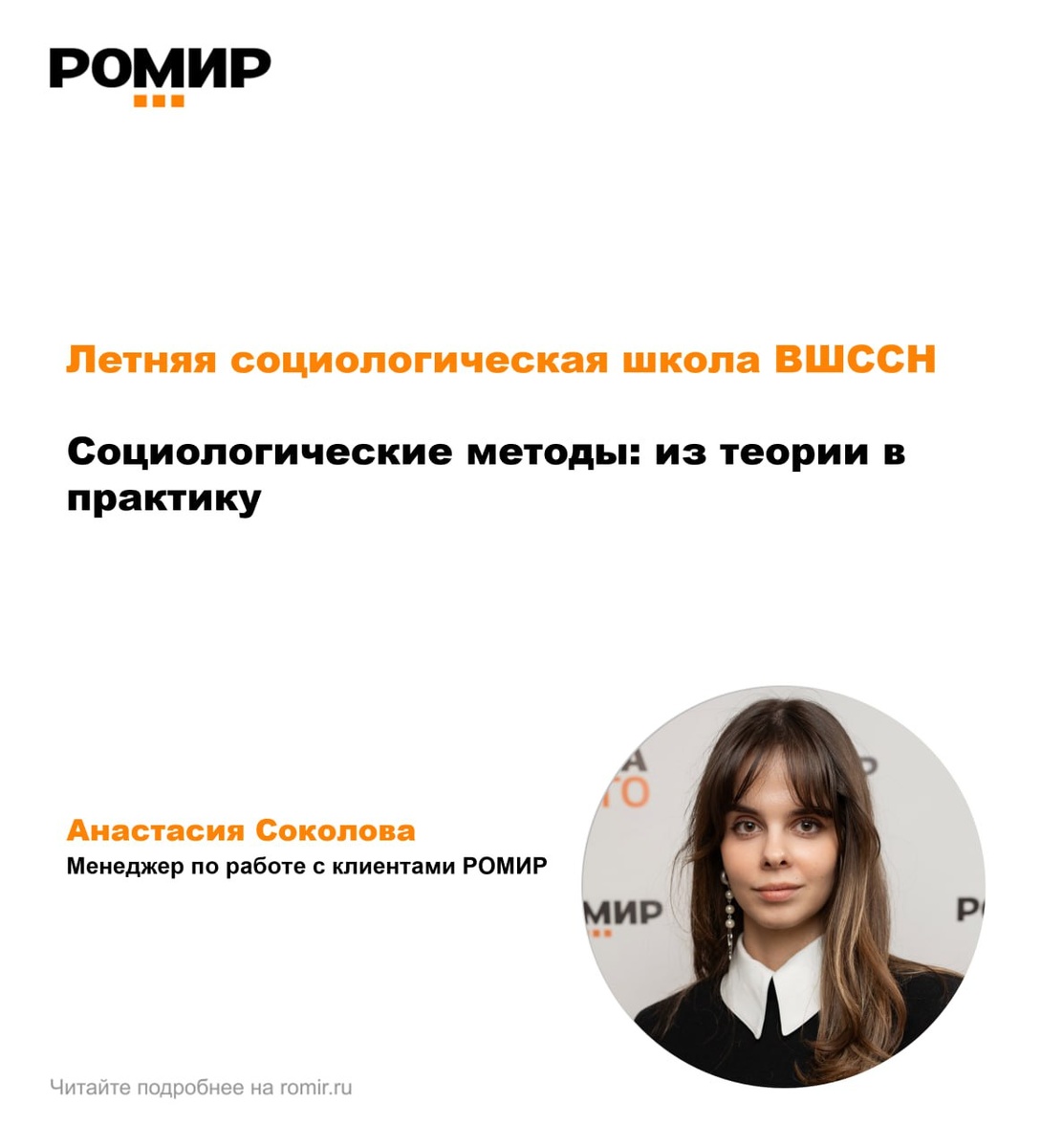 В ответ на пост РОМИР: со школьной скамьи к реальным проектам – формируем будущее социологии РОМИР продолжает участие в Летней социологической школы ВШССН. Если вчера наш эксперт Маргарита Абрамкина выступала перед аудиторией, насчитывающей более тысячи студентов со всей России, то сегодня менеджер по работе с клиентами РОМИР Анастасия Соколова провела лекцию для тысячи школьников. Ее выступление на тему “Социологические методы: из теории в практику” наглядно продемонстрировало, что такое быть социологом в современном мире. Анастасия раскрыла суть профессии, показала, какие результаты приносит работа исследователя, привела конкретные примеры – реальные проекты РОМИР, а также объяснила основные цели и задачи социолога. Важным напутствием для школьников стал совет быть разносторонними, эрудированными и начитанными – качествами, незаменимыми для грамотного специалиста в любой сфере, а в социологии особенно. Эта философия — переход от теории к практике — является краеугольным камнем наш
