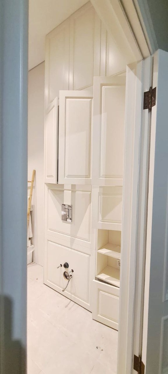 От проекта к воплощению - к нам обратился Антон из г. Шатура с задумкой по оформлению зоны инсталляции. Честно скажем, проект был непростой, необходимо было учесть множество технических нюансов, чтобы и внешне, и по функционалу шкаф устраивал заказчика. Но в итоге все получилось отлично - Антон доволен полученным результатом 💫 Фасады шкафа и видимая боковина выполнены из МДФ с фрезеровкой (покраска эмалью RAL 9010), внутренний корпус ЛДСП Nordeco Белый, дверцы открытие Push-to-open. Изготовим для вас любые фасады и корпусную мебель - по готовому проекту, визуализации, картинке/референсу из интернета ☎️ +79256310825