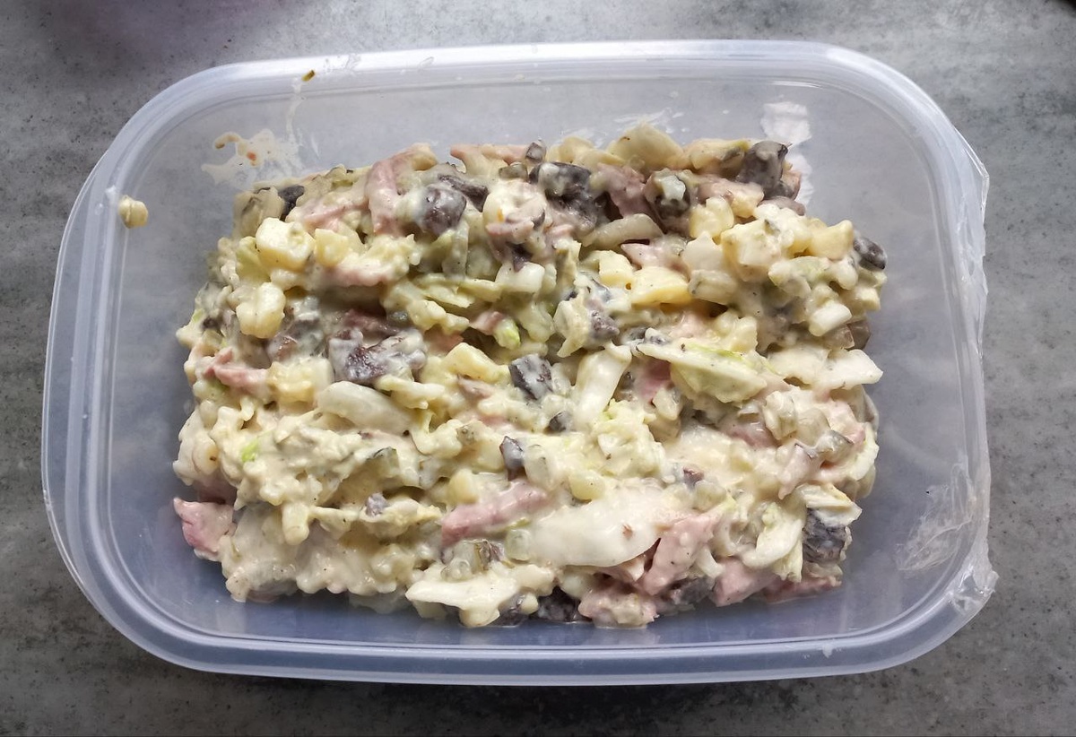 Мой любимый картофельный салат из индейки су-вид с грибами.