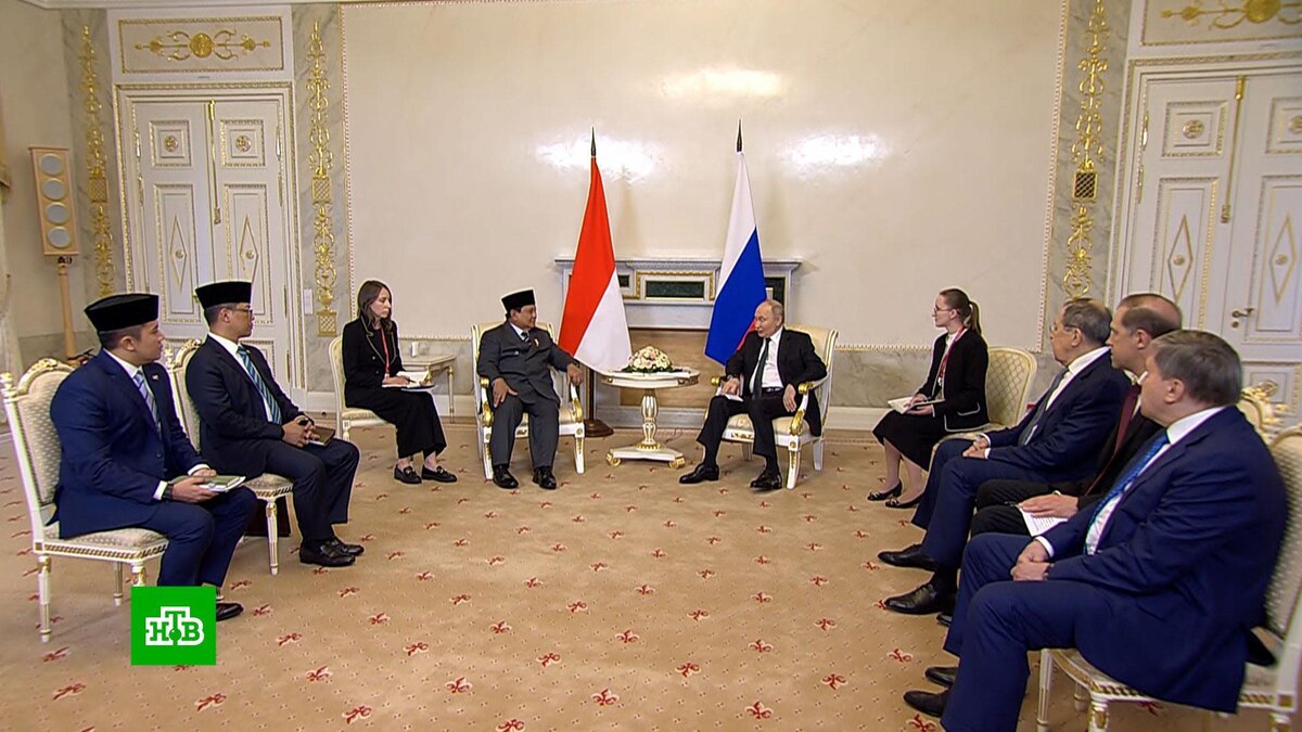 [ Смотреть видео на сайте НТВ ] Сотрудничество Москвы и Джакарты укрепляется и растет по всем направлениям. Об этом заявил Владимир Путин во время переговоров с президентом Индонезии Прабово Субианто. Встреча прошла в Санкт-Петербурге в рамках Международного экономического форума. Владимир Путин, президент России: «Наши отношения развиваются поступательно с Индонезией. Товарооборот растет. У нас есть хорошие перспективы по целому ряду перспективных и очень интересных направлений взаимодействия. Это и сельское хозяйство, и космос, и энергетика. Это взаимодействие в области военно-технического сотрудничества. У нас есть большой объем, причем растущий объем, взаимодействия». Путин также отметил, что Индонезия недавно стала полноправным членом БРИКС, и выразил надежду, что это государство внесет свой существенный вклад в развитие и работу организации, которая приобретает все больший вес в международных делах. Глава государства добавил, что завтра он и президент Индонезии будут участвовать