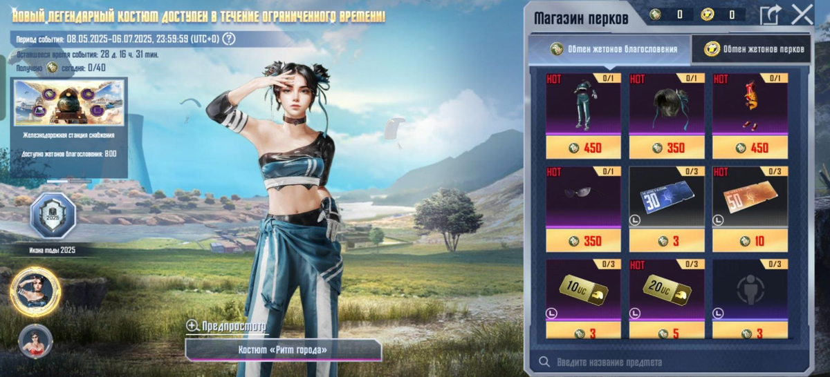Магазин перков - постоянная функция. После окончания обмена костюмов ассортимент магазина и лимит покупок будут обновлены. Товары в магазине можно получить за жетоны (имеют срок действия) текущего события. Новые костюмы, «Ритм города» и «Солнечные каникулы», из текущего ассортимента вернутся только в следующем году, так что успевайте их забрать, пока ивент не закончился!