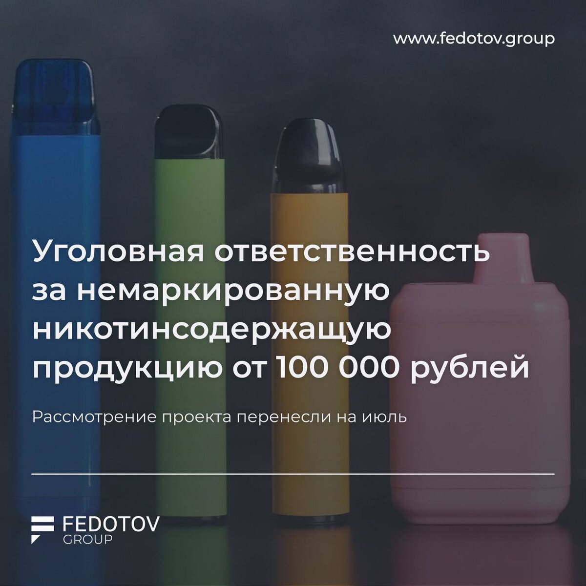 ⚡️Уголовная ответственность за немаркированную никотинсодержащую продукцию от 100 000 рублей — рассмотрение проекта перенесли на июль