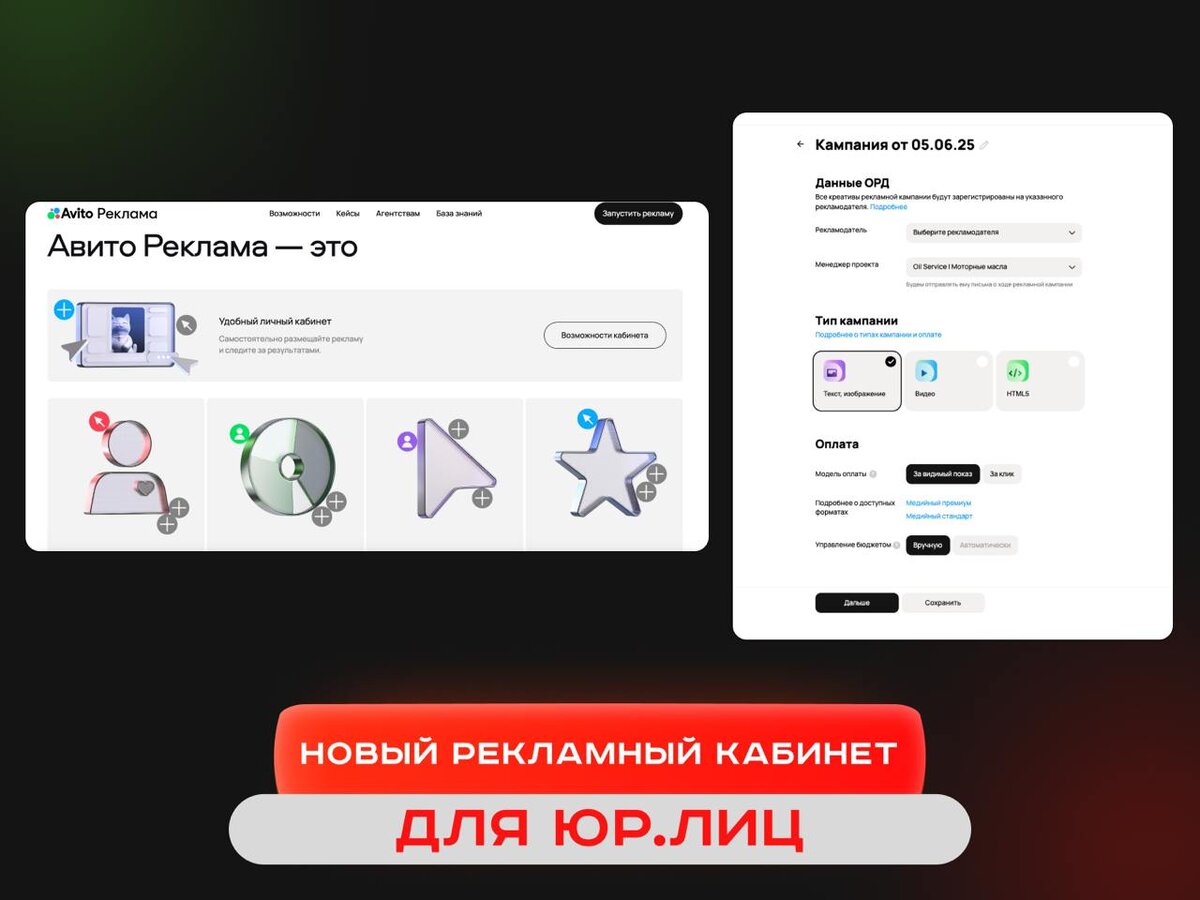 Теперь у юридических лиц появился мощный инструмент для продвижения — отдельный рекламный кабинет от Avito, заточенный под нужды среднего и крупного бизнеса. Это первая такая платформа с полным доступом ко всем возможностям площадки. 📊 Что даёт новый кабинет: 🔹 Доступ к 72+ миллионам пользователей 🔹 Гибкая настройка и управление кампаниями 🔹 Растущая узнаваемость бренда и поток заявок 📌 Основные фишки: ✅ Гибкая структура: кампании, группы и креативы — всё под контролем, легко тестировать гипотезы и управлять бюджетом. ✅ Платишь за результат: выбирай оплату за показы (CPM) или за клики (CPC). ✅ Низкий порог входа: стартуй с 5 000 ₽ — подходит и для теста, и для масштабирования. ✅ Мощные форматы: яркие баннеры, видеореклама, HTML5 — чтобы вас точно заметили. ✅ Адаптивность: ваши креативы автоматически подстроятся под любое устройство. 💡 Новый кабинет — это шаг в сторону умной рекламы, когда каждая копейка работает на результат. Ну что сказать, тестируем, интересная тема 😁 📱