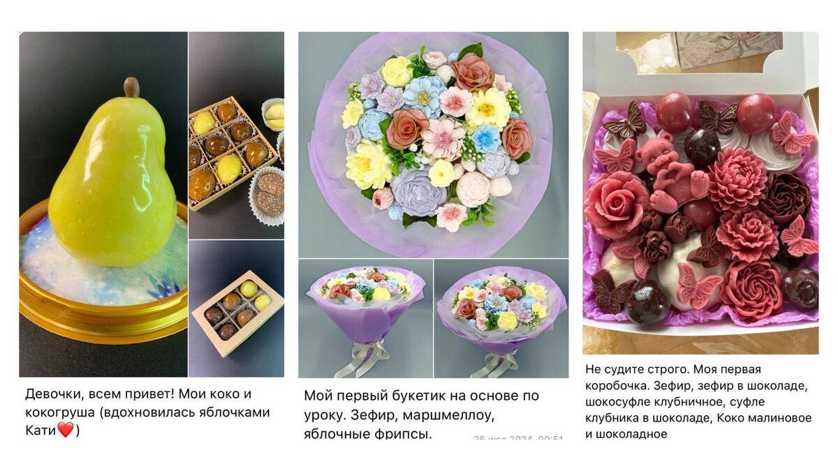 Или почему фуд-флористика — это не про талант, а про систему ✍️ Автор: Юлия Чувьюрова основательница международной школы «Вегбукет», автор более 220 рецептов съедобных цветов, создатель первого в мире Музея съедобного букета «Я не умею лепить, печь, оформлять красиво…» Если вы это про себя — отличная новость: именно у таких учеников получаются лучшие съедобные букеты своими руками. Почему? Потому что фуд-флористика для начинающих — это не про «талант», а про понятную систему. 💡 Секрет №1 — съедобные цветы в молдах: красиво и легко Когда я только начинала, поняла: вручную лепить долго, сложно и не достаточно вкусно и разнообразно, а карвинг - травмоопасно. Поэтому я разработала специальные молды— формы, в которых можно быстро создавать цветы из еды, которые выглядят как настоящие. И готовятся быстрее и легче: приготовила массу, залила в молд, дождалась стабилизации и можно собирать букет. Сегодня в моей школе уже более 220 рецептов съедобных цветов в молдах, и они деля