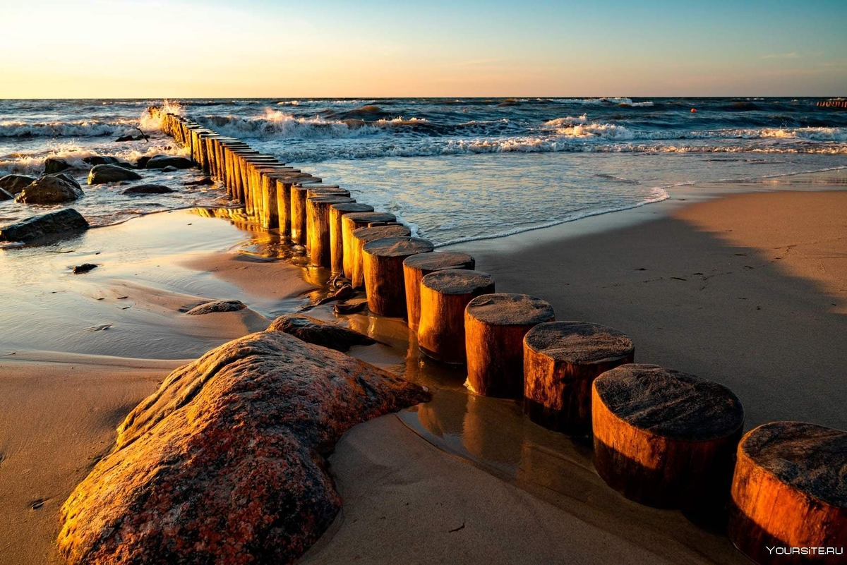 Одна из фишек Балтийского побережья - это фотографии моря, расчерченного бунами - специальными деревянными конструкциями, которые идут от берега внутрь моря метров на 30. Это специальные сооружения защиты побережья от буйного временами моря, которое бывает очень сильным
