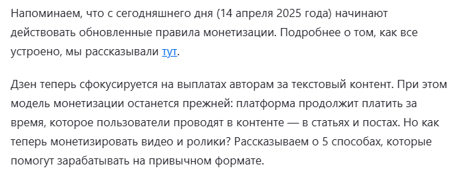 Политика Дзена опять слегка поменялась, так что уже некоторое время видео не монетизируются. То есть, смысла их держать на этой платформе больше нет. Те пять "вариантов", которые предлагают в статьях - это явно полная ерунда, которой не стоит заморачиваться. Я некоторое время подождал, посмотрел. Но на донаты тут рассчитывать как-то не приходится. Получается, что в данном случае мои же видео будут бесплатным конкурентом мне же на других платформах. Получается, что надо видео отсюда удалять, раз никакой пользы они не приносят, во всяком случае, мне. В связи с этим возникает вопрос, просто поудалять все видео или есть какой-то вариант сделать их невидимыми для окружающих? Чтобы в тот день, когда Дзен передумает, видео вновь можно было сделать видимыми. Есть такая функция? Я пока не видел. А вот информация, чтобы не быть голословным. Всем хорошего настроения! Мой сайт: https://kont-antibus.wixsite.com/patrikeevartem Мои книги: https://ridero.ru/author/patrikeev_artem_yurevich_cq_e/