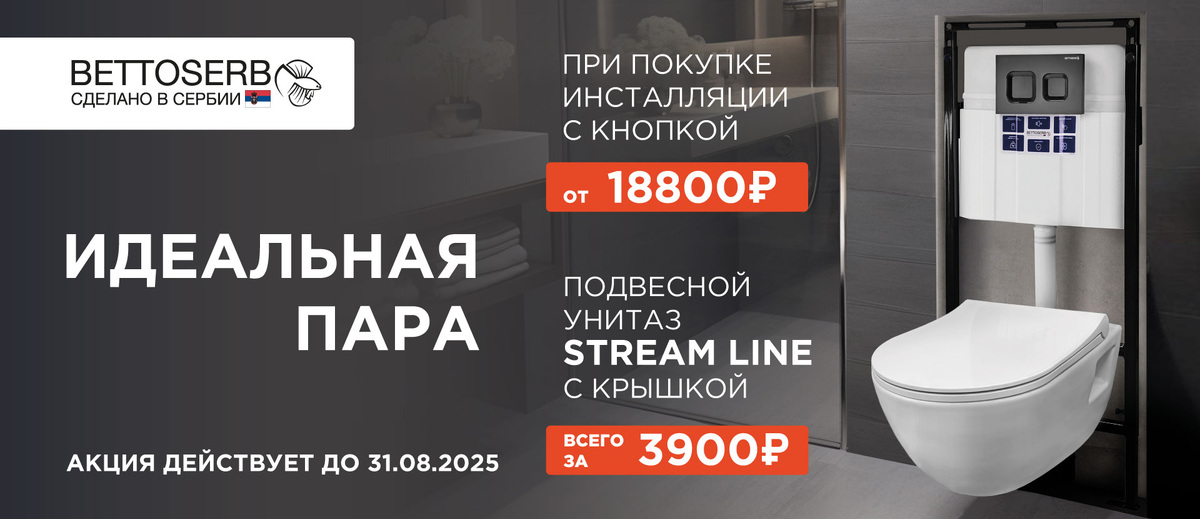 ✔ Ободковый смыв — не самый современный, зато проверенный: вода не разбрызгивается, всё смывает чисто.