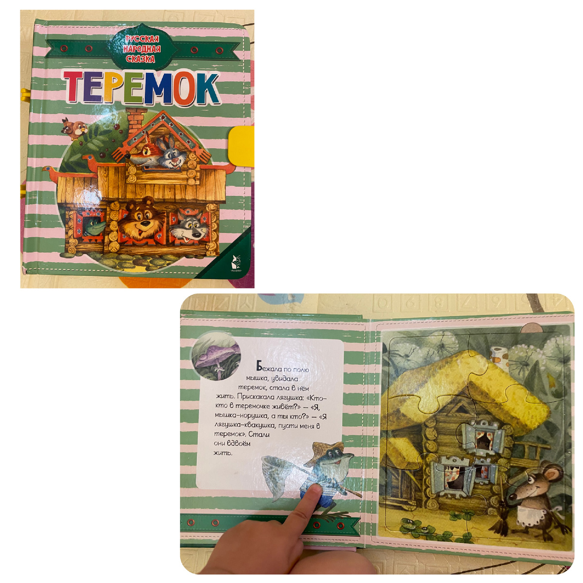 «Стоит в поле теремок, он не низок, не высок», - какие знакомые каждому из нас строчки! Давайте повторять такие добрые сказки чаще. Я тут подметила, что Вера хорошо уже мне помогает рассказывать «Курочку Рябу», «Репку», «Колобка». У нас так много мудрых и простых, подходящих для малышкового восприятия сказок! Я решила вспомнить с ней детально «Теремок» и переключить наше внимание также на другие сказки. Для малышей сказка хорошо подходит, потому что в ней всё просто: Вечером мы спокойно почитали сказку, рассмотрели картинки (в нашей книге картинки-пазлы на страницах), даже успели поговорить про некоторых героев. Вспомнили, где живет лягушка, что ест мышка, зайка и медведь, кто из них маленький, а кто большой, из чего состоит домик. Пообещала Вере, что утром нарисуем сказку. Уложила спать, подготовила обещанные шаблоны. Рисовать будем пальчиковыми красками, которые, к сожалению, уже совсем на исходе. В идеале такие многослойные рисунки получились бы точечными маркерами. На альбомный л