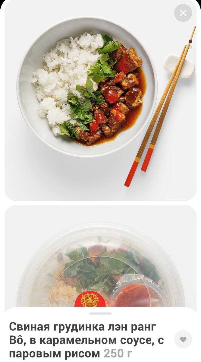 1. Свиная грудинка лэн ранг Bô в карамельном соусе с паровым рисом за 399 рублей.