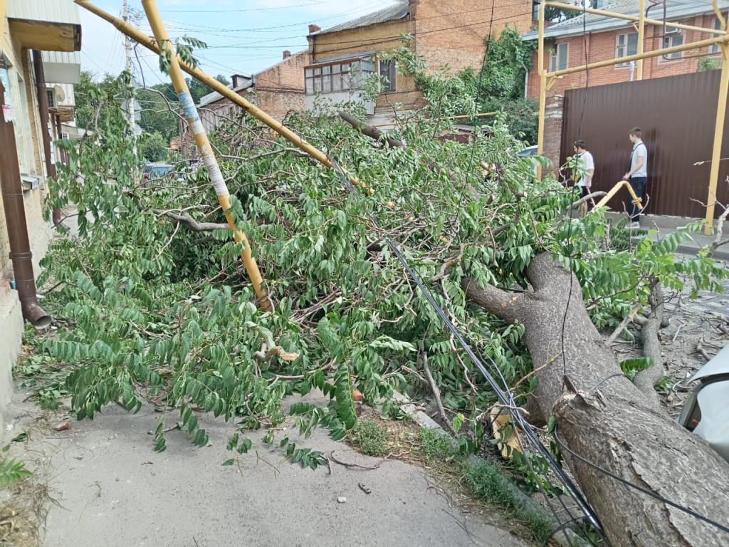 Ветер валил деревья на дороги и автомобили и калечил ростовчан