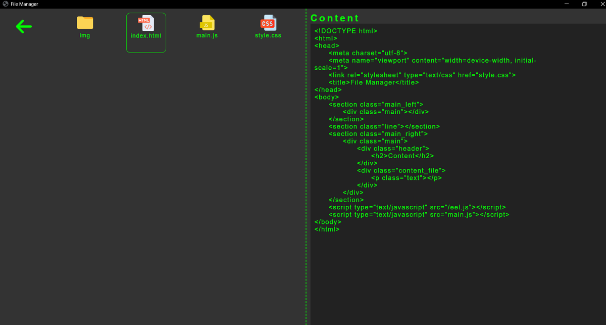 Создание собственного файлового менеджера на Python — отличный способ прокачать навыки программирования и получить инструмент, идеально подходящий под ваши задачи. Особенно интересно реализовать современный интерфейс с помощью модуля Eel, который позволяет писать фронтенд на HTML, CSS и JavaScript, а логику — на Python. Преимущества собственного файлового менеджера Модуль Eel позволяет создавать десктопные приложения с современным веб-интерфейсом, используя привычные технологии фронтенда (HTML, CSS, JS) и Python для бэкенда. Это даёт такие плюсы: 1. Установка Eel 2. Структура проекта 3. Пример Python-кода В файле file_ops.py: В main.py: 4. Пример frontend (index.html & JS) html: JS: 5. Связь фронта и бэка Вызовы функций через eel позволяют отправлять запросы из JS в Python и обратно. Например, при клике на кнопку JS вызывает Python-функцию для создания файла или получения списка директорий. Создание файлового менеджера на Python с Eel — современный и гибкий способ реализовать нужный фу