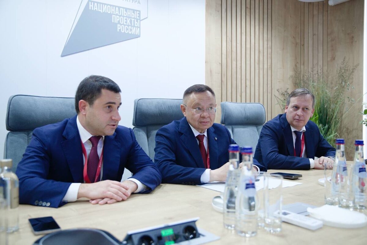 Министр строительства и ЖКХ Ирек Файзуллин и Глава Республики Адыгея Мурат Кумпилов провели рабочую встречу в рамках ПМЭФ'25