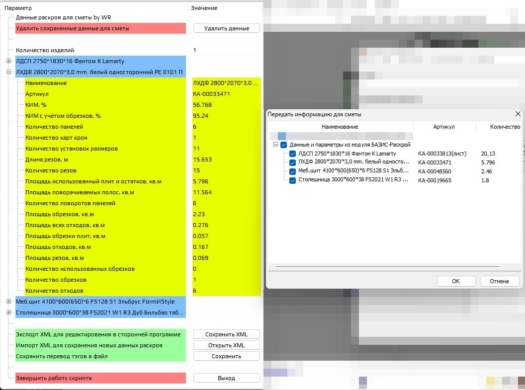 Скрипт предназначен для редактирования данных раскроя, которые хранятся в модели и передаются в смету