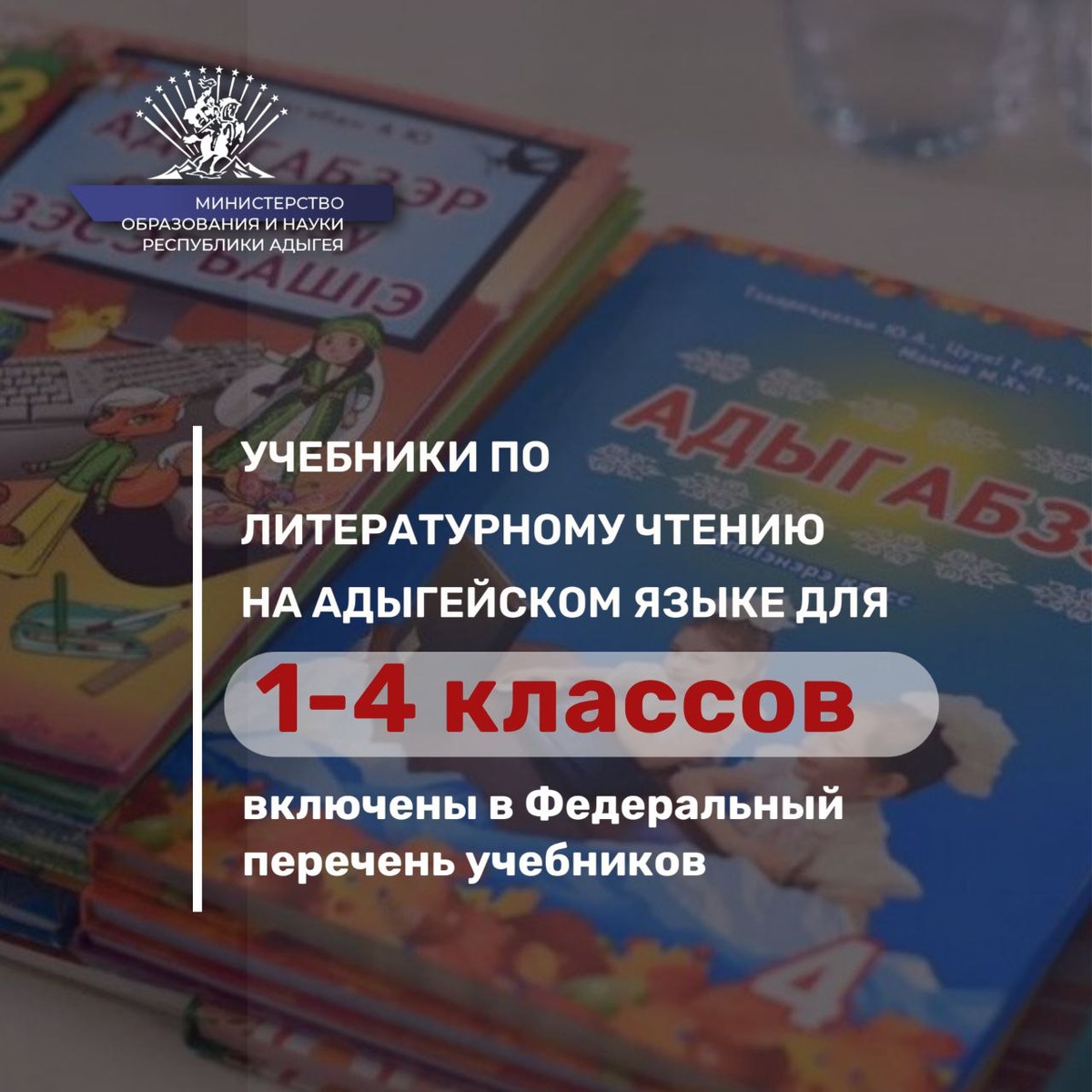 📚 Важная новость! Учебники по литературному чтению на родном (адыгейском) языке для 1-4 классов общеобразовательных организаций и разработанные в комплекте с ними учебные пособия включены в Федеральный перечень учебников, допущенных к использованию при реализации имеющих государственную аккредитацию образовательных программ начального общего, основного общего и среднего общего образования (ФПУ). Соответствующее решение было принято на заочном заседании Научно-методического совета по учебникам 11 июня 2025 года (протокол N ОК-45/03пр). Учебники по родной (адыгейской) литературе для 5-9 и 10-11 классов были включены в ФПУ ранее.