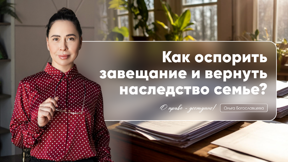 Сегодня хочу рассказать о важной теме: можно ли оспорить завещание и вернуть наследство в семью. Казалось бы: раз есть завещание — всё решено. Но далеко не всегда. Закон даёт возможность бороться за свои права. Главное — знать, как действовать. В этой статье поделюсь примерами из практики и дам работающие рекомендации. Сейчас законодательство чётко определяет основания, по которым суд может признать завещание недействительным (ст. 1131 ГК РФ): 1️⃣ Недееспособность завещателя