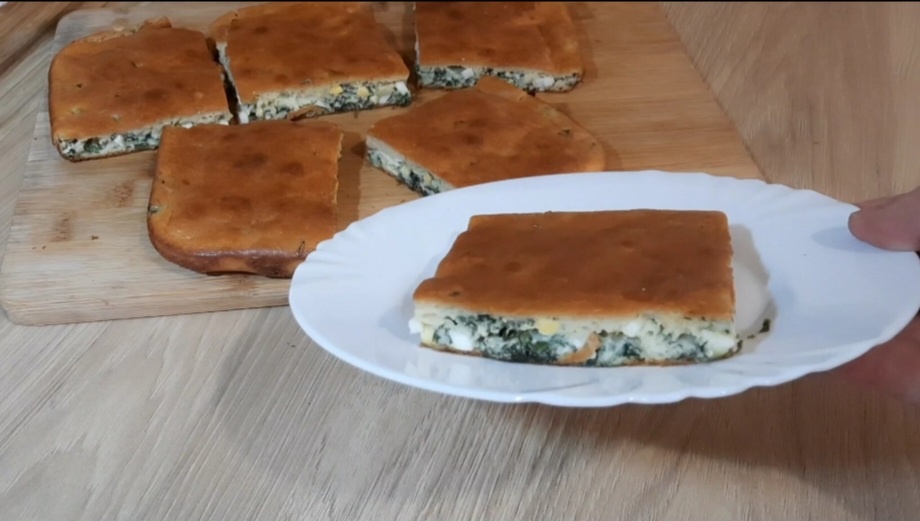 Наступила пора молодого зелёного лука. В зелёном луке содержится намного больше витаминов и полезных веществ, чем в самой луковице. Сегодня и я купила пучок свежего зелёного лука и решила испечь заливной пирог, который очень давно не пекла. Для начинки мне ещё понадобились три варёных яйца, укроп и сметана. Лук и укроп помыла и мелко порезала. Яйца мелко нашинковала яйцерезкой. Всё перемешала, посолила, заправила сметаной. Приготовила тесто из: 150 мл кефира, 150 мл сметаны( или майонеза) 2 сырых яйца, 1 ч.л.сахара, 1 ч.л.соли 3 ст.л. растительного масла 5 ст. л. просеянной муки 2 ч.л. разрыхлителя для теста. Форму для выпечки смазала растительным маслом. Налила на дно формы первый слой теста. На слой теста нанесла начинку. И начинку покрыла оставшимся тестом. Ставим форму в духовку, нагретую до 180 гр., на 30 минут. Пирог подрумянился, вынимаю его из духовки. А сейчас надо остудить пирог Нарезаю на кусочки , и можно пить чай с наивкуснейшим пирогом! Всем приятного аппетита, дорогие