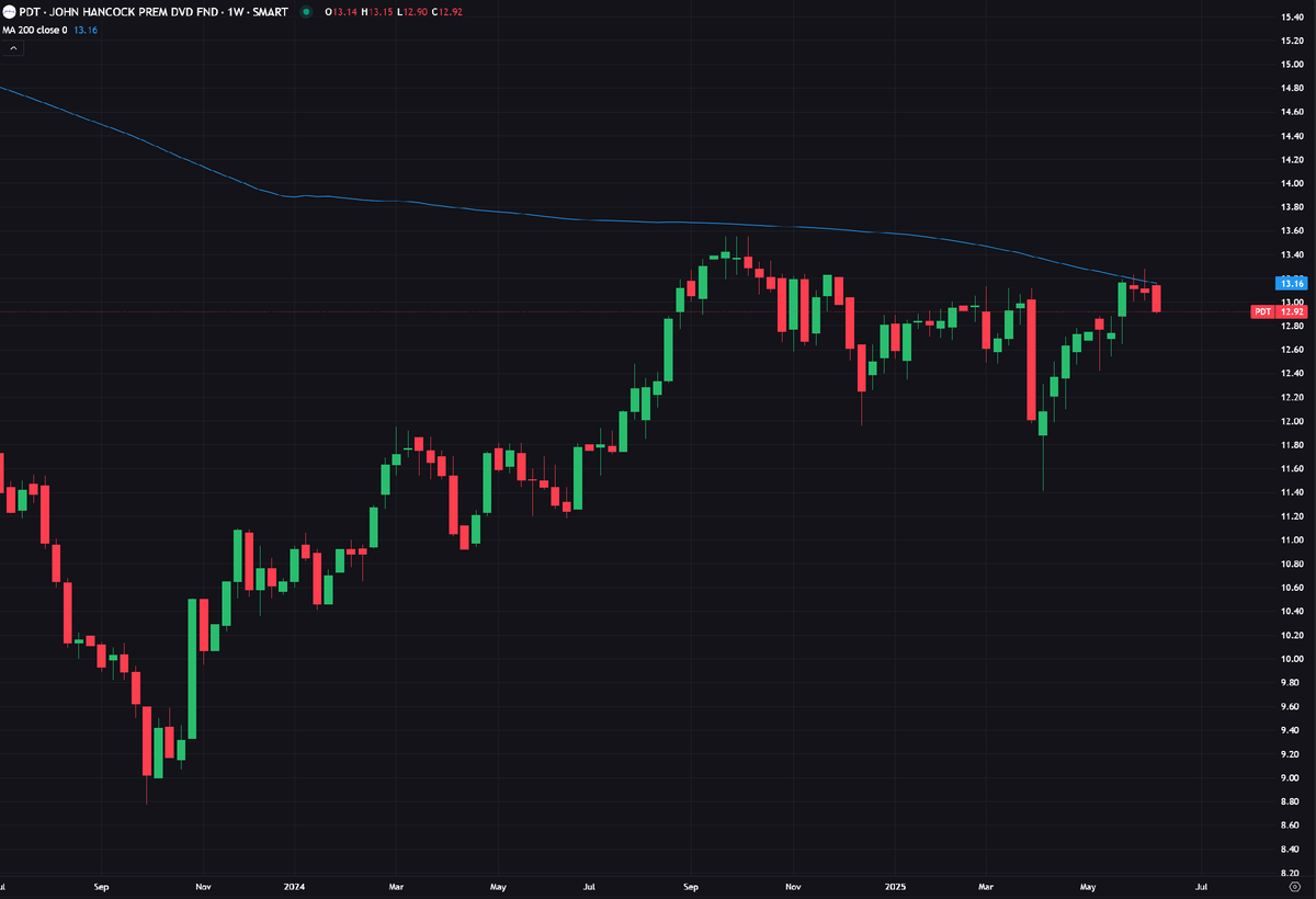 Хотя это не обязательно была стратегия, которая была в фаворе в течение некоторого времени, инвестирование в дивиденды по-прежнему представляет собой один из лучших способов создания долгосрочного богатства. Это особенно касается пенсионеров, которые, вероятно, ищут некое сочетание сохранения капитала и стабильного, предсказуемого дохода. Последнее часто можно найти через закрытые фонды, которые предлагают фиксированные графики распределения, но первое найти немного сложнее. Многие берут на себя более высокие риски, включая использование кредитного плеча, чтобы усилить потенциальную прибыль, но это также происходит за счёт большего риска просадки. Однако есть некоторые исключения. John Hancock Premium Dividend Fund ($PDT) нацелен на доходные ценные бумаги, но ему удается удерживать уровень риска на достаточно низком уровне, несмотря на 36%-ное кредитное плечо. На первый взгляд, соотношение доходности и риска выглядит довольно привлекательным, но есть несколько скрытых проблем, а именн