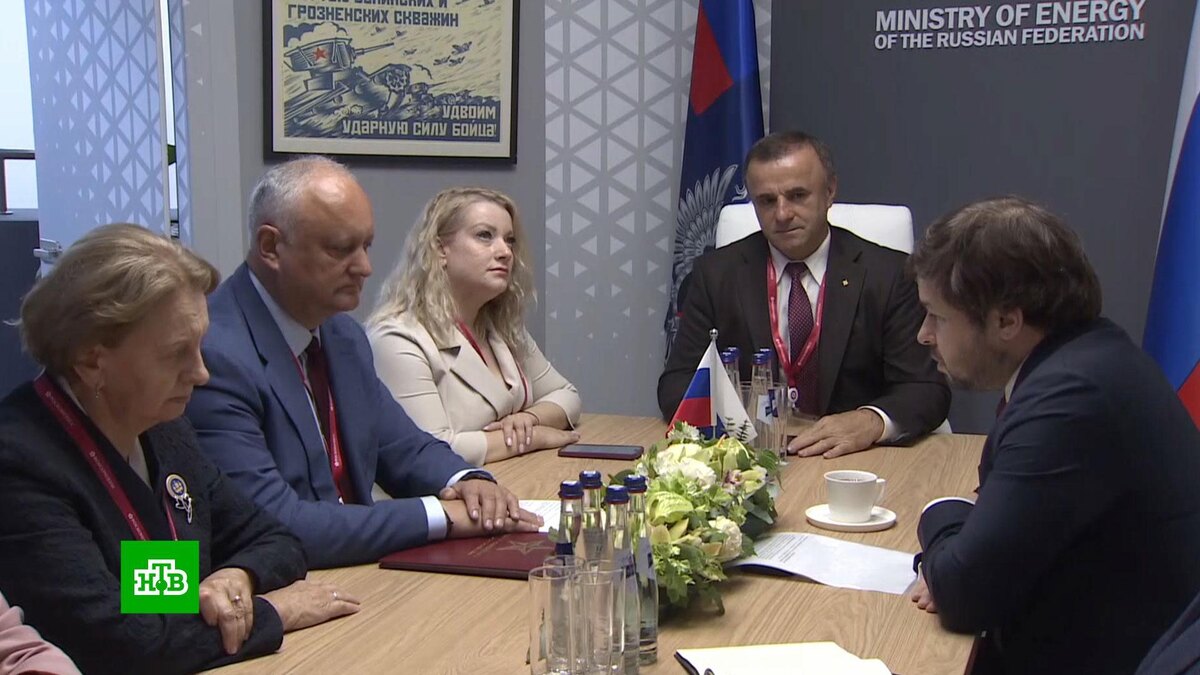 [ Смотреть видео на сайте НТВ ] На полях ПМЭФ группа молдавских политиков обсудила сотрудничество с Россией в сфере энергетики, грузоперевозок, а также перспективы возобновления авиасообщения между странами. Сегодня делегация политиков из Молдавии обсуждала на форуме сотрудничество с Россией в сфере энергетики. На полях ПМЭФ бывший президент страны Игорь Додон встретился с первым заместителем Минэнерго России Павлом Сорокиным. Додон отметил, что антироссийская политика сегодняшних властей в Кишинёве во главе с президентом Санду привела к скачку цен на энергоресурсы в стране, в результате зафиксирована рекордная инфляция в 30%. Игорь Додон: «Нужно закупать ресурсы напрямую у России. Сейчас Молдавия закупает тот же российский газ через европейских посредников. Цены очень высокие. И это влияет на конкурентоспособность наших товаров». А глава российского Минтранса Роман Старовойт провел переговоры с депутатом парламента Молдавии, представителем политического блока «Победа» Мариной Таубер и