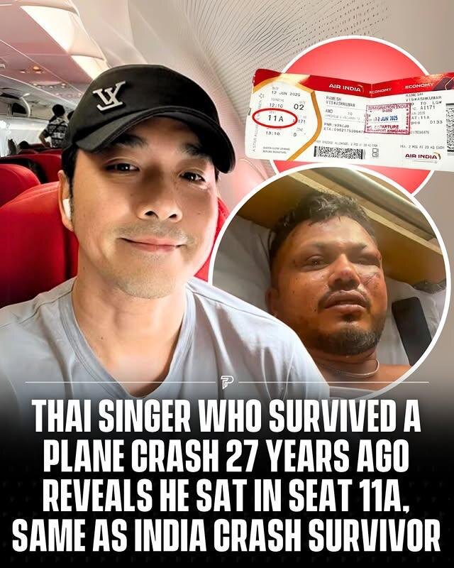 ✅✅✅Тайский певец Руангсак, выживший в авиакатастрофе 1998 года, в которой погиб 101 человек, сидел в кресле 11A — как и единственный выживший в недавней катастрофе в Индии. 27 лет спустя номер места снова оказался тем же. «Мурашки по коже», — признается певец. Кажется место 11А будут продавать в 10 раз дороже. ✅✅✅ Вы бы после такого полетели снова ?