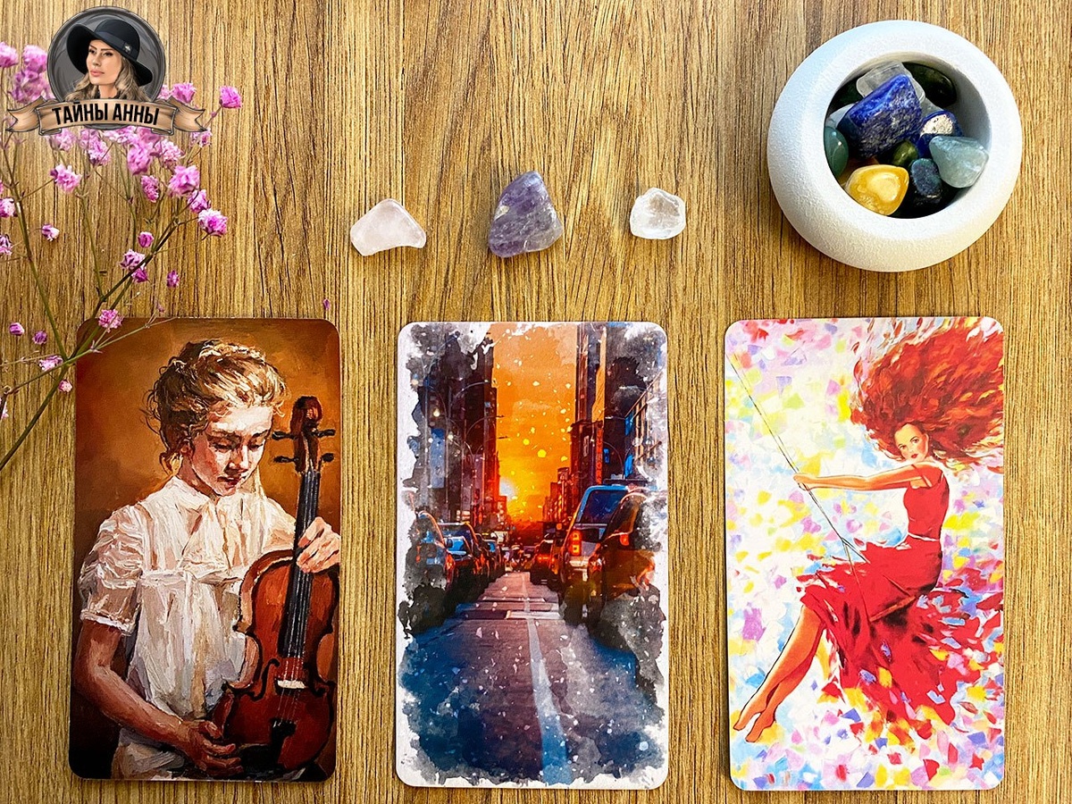 🌙 В моей душе звучит симфония жизни... На сегодня всё! Завтра будет новый день и новые расклады! А пока — метафорические карты этого вечера на сон грядущий. Подумайте, о том, что они вам навевают... Аффирмация на вечер и утро: «В моей душе звучит симфония жизни — творчество, работа и радость бытия сплетаются в единую мелодию судьбы». ◈ Девушка со скрипкой — первая карта олицетворяет связь с собственной душой через творчество. Скрипка здесь — не просто музыкальный инструмент, а этакий «проводник», помогающий излить душу. А истинное творчество требует уединения и сосредоточенности и подходящего инструмента. Как музыкант настраивает свой инструмент перед выступлением, так и мы должны регулярно «настраивать» свою душу через медитацию, молитву или любую другую практику... ◈ Городская суета — после погружения в себя неизбежно приходит время выйти в мир. Эта карта показывает бурлящий поток городской жизни, где каждый спешит по своим делам. Именно здесь, в гуще событий, среди людей и зада