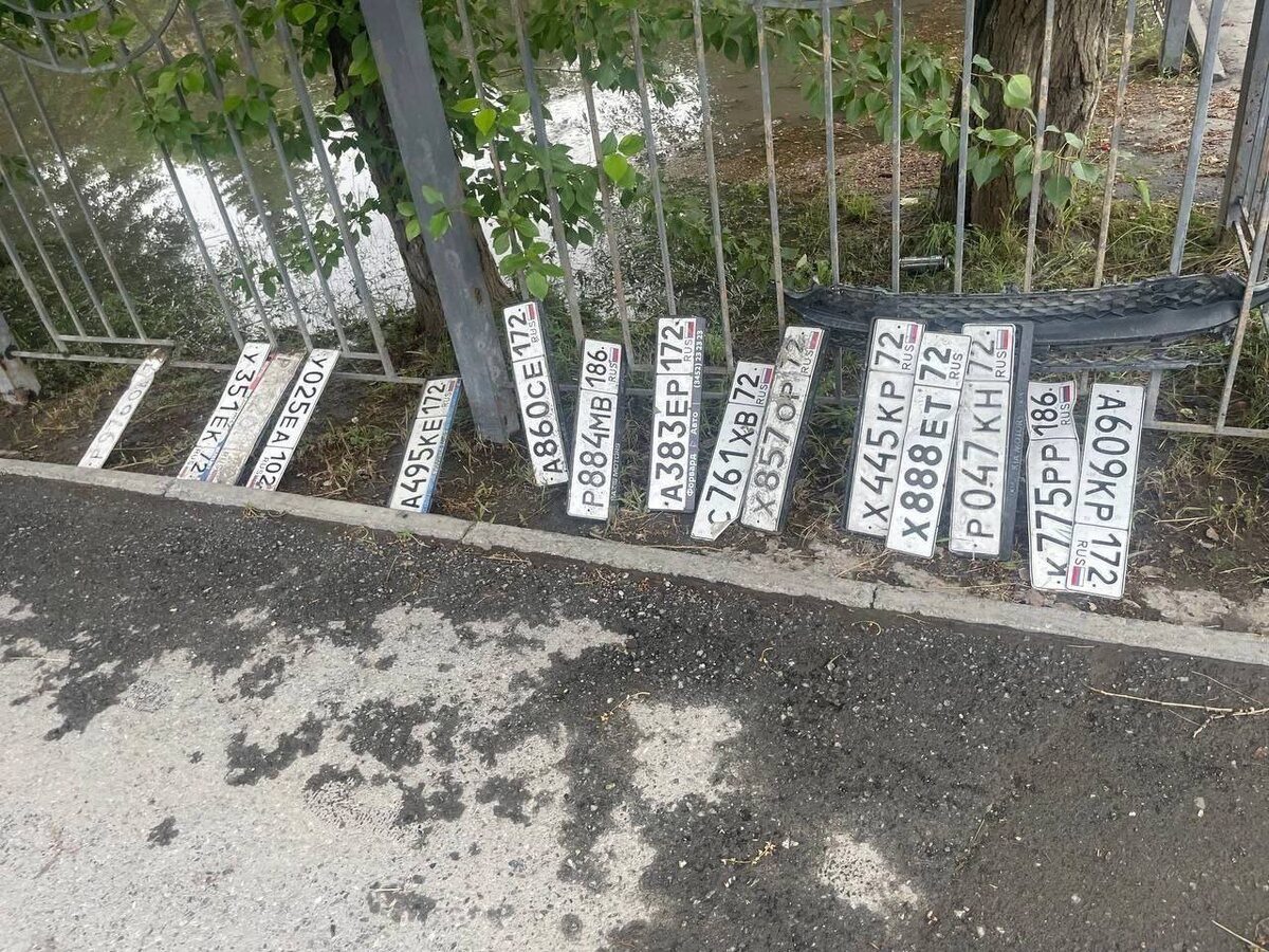 После сегодняшней непогоды тюменцы потеряли множество автомобильных номеров из-за затопленной улицы 30 лет Победы.