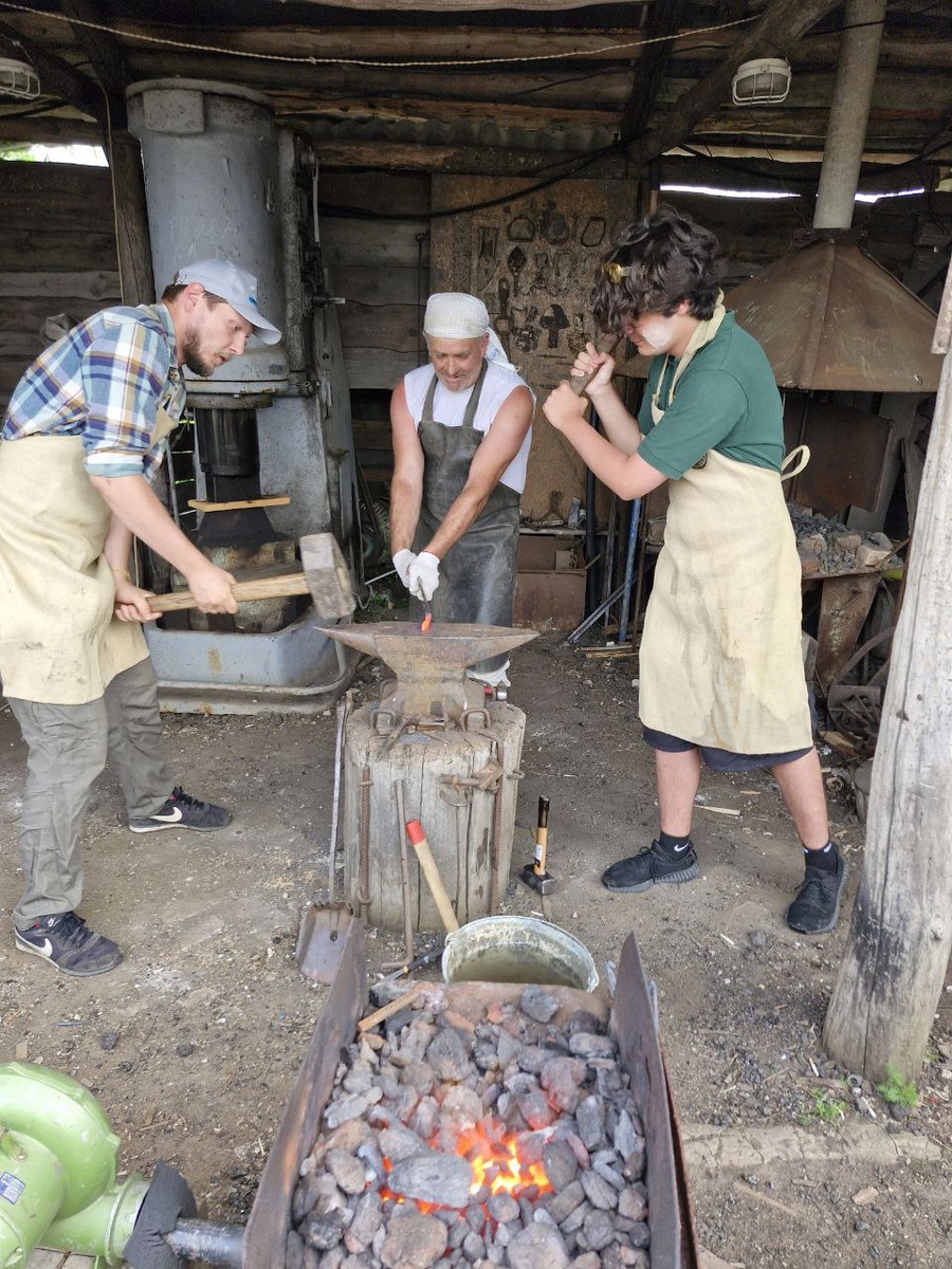 Кузнец Алексей Петрович обучал детей и вожатых тонкостям кузнечного дела.