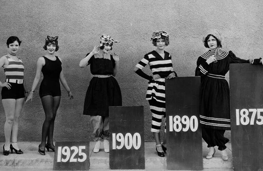В разную эпоху была разная мода: например, посмотрите на наряды мужчин XVIII века, ведь они были немыслимы без чулок и париков. Купальник ― это тот элемент гардероба, чья эволюция отражает изменения общественных нравов, взглядов на красоту тела и саму концепцию отдыха. Сегодня мы воспринимаем купальные костюмы как нечто само собой разумеющееся, однако всего столетие назад они выглядели совершенно иначе.