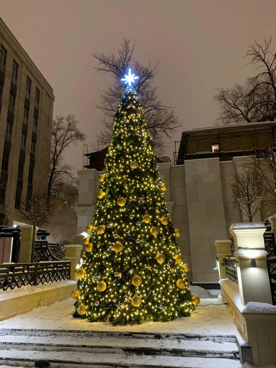 Уличная ёлка обычно включает в себя несколько компонентов: