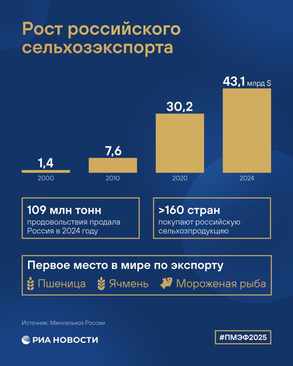 Темпы развития аграрной сферы сегодня обсуждали на одной из сессий ПМЭФ. Основные показатели - в нашей инфографике.