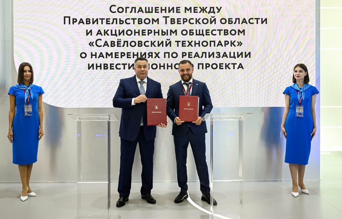В Савёловском технопарке в Кимрах запланировано реализовать инвестпроект, рассчитанный до 2034 года. Как сообщает пресс-служба правительства региона, это позволит привлечь в Тверскую область до 3,5 млрд рублей инвестиций и создать дополнительные рабочие места. 19 июня на Петербургском международном экономическом форуме было подписано соответствующее соглашение. Документ подписали губернатор Игорь Руденя и представитель АО «Савеловский технопарк» Эдуард Городецкий. Губернатор отметил, что в технопарке уже размещается 18 производств, создано свыше 1000 рабочих мест: - В рамках подписанного сегодня соглашения планируется строительство современных производственных зданий площадью свыше 37,5 тысячи квадратных метров для размещения высокотехнологичных предприятий. Инновационно-промышленный парк Тверской области «Савёловский» был создан в городе Кимры в 2022 году. Площадь производственных помещений сейчас составляет около 100 тыс. кв. м. В проект инвестировано 1,8 млрд рублей. ✏️ «КП»-Т