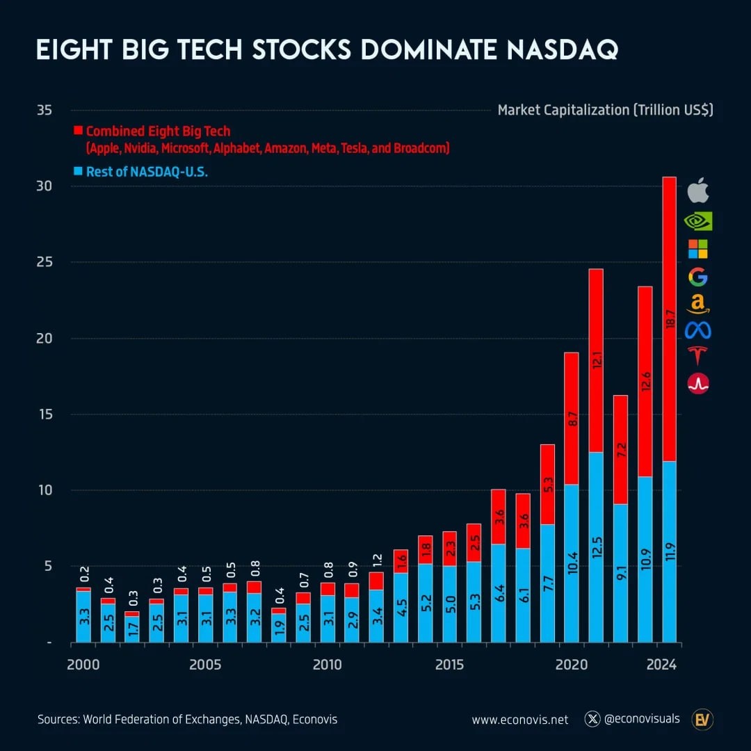 The big eight tech giants are totally ruling the NASDAQ index! 💻💪 #TechTakeover