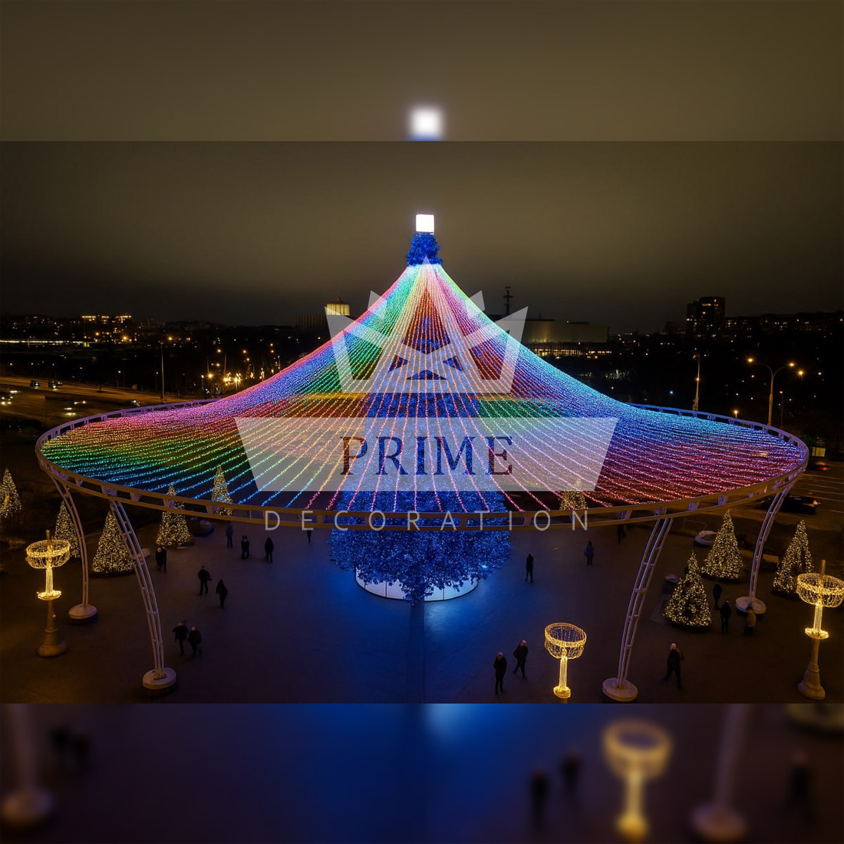 RGB шатер PRIME DECORATION – стильное и функциональное украшение для уличной елки, которое превратит ее в яркий и запоминающийся элемент праздника.