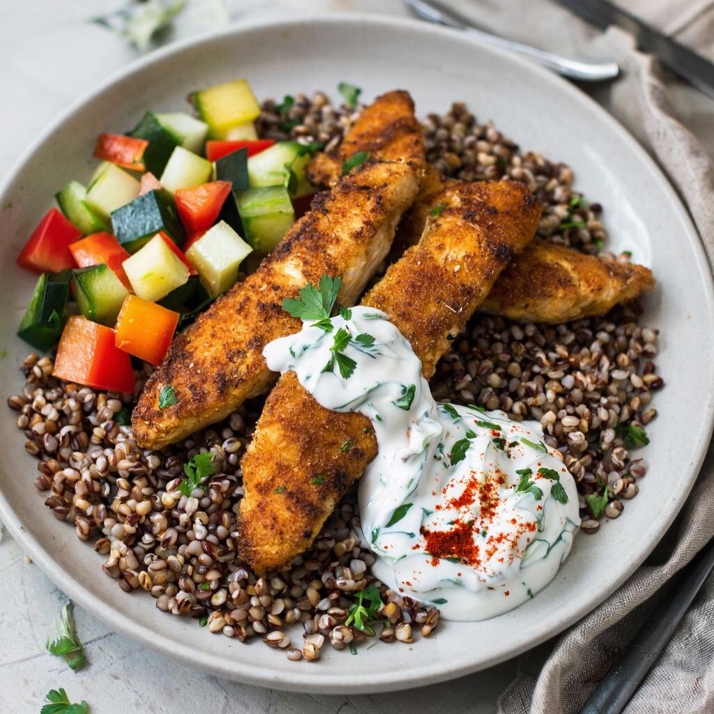 Всем привет! 😁 Иногда хочется приготовить ужин, который порадует вкусом, но при этом не станет причиной дискомфорта или чувства переедания. Именно таким блюдом является курица с хрустящими свежими овощами. Это идеальное сочетание нежного мяса птицы, насыщенного ароматом специй и свежести сезонных овощей. Такой ужин прекрасно подходит тем, кто следит за фигурой, ведь он богат белком и медленными углеводами, обеспечивая длительное ощущение сытости без лишней нагрузки на организм. Этот рецепт полюбился многим приверженцам здорового питания и фитнес-инструкторам, потому что имеет несомненные плюсы: Итак, приготовив такую курочку с гречкой и овощами, вы получите идеальную комбинацию полезных веществ и наслаждения прекрасным вкусом, идеально подходящую для тех, кто хочет вкусно питаться и поддерживать форму одновременно. - 1 куриное филе (или сочное бедро без кожи) - ½ чашки гречки или бурого риса - Горсть свежих овощей (помидор, огурец, болгарский перец) - 1 ч. л. оливкового масла