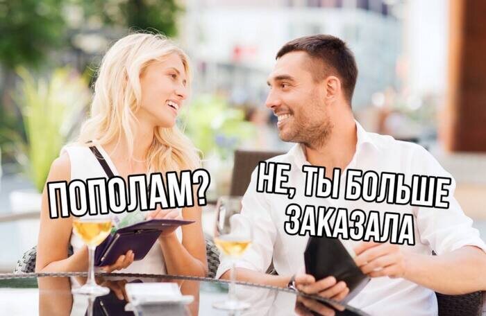 Приятель рассказал. Познакомился с девушкой. Причём написала на сайте первая, а после недолгой переписки предложила в тот же день встретиться в кафе после работы. И добавила «Я не тарелочница. Каждый платит за себя.». Ну приятель обрадовался — сейчас такое редкость, чтобы девушка за себя платила, обычно любят нахаляву пожрать. Пошли в хорошее кафе. Само-собой голодные. Заказали пиццу, суши, роллы, винца. Сидят, смеются, общаются, всё идёт хорошо… Пока не приносят счёт. Она: «Окей, как и договаривались? Переведу тебе по телефону». Он: «Конечно». Она: «Лови 300 рублей!. А весь счёт был на 3400. Он: «Погоди. Мы заказали всё вместе... тут две пиццы, вино, сеты роллов». Она: «Ну я же вино пригубила. И пиццу кусочек съела. Ну а роллы мне не понравились». Приятель не стал разбираться, всё же не на суде по алиментам. В итоге сказал «Ладно, не парься». А когда приехал домой, получил от неё сообщение: «Спасибо за вечер. Извини, ты мне не подходишь. Не люблю жадных.». Подписаться на Пикабу Познав