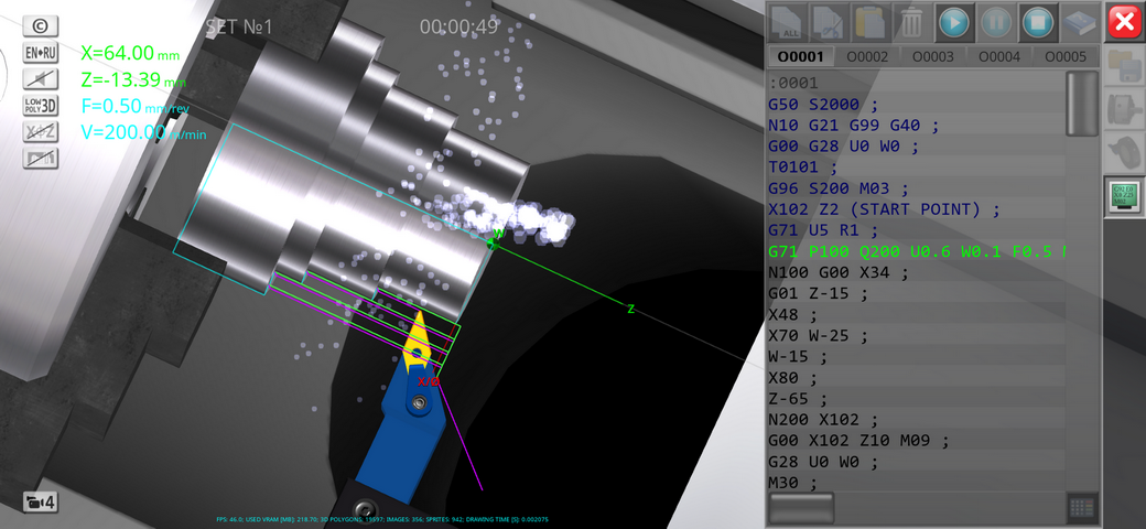 Модификация контура = автоматическое изменение черновых проходов. Если нужно изменить форму детали, достаточно откорректировать блоки чистового контура (между P(ns) и Q(nf)). Весь черновой цикл G71 автоматически перестроится под новый контур. Без G71 пришлось бы пересчитывать все черновые проходы вручную. - Четкое разделение черновой и чистовой обработки: