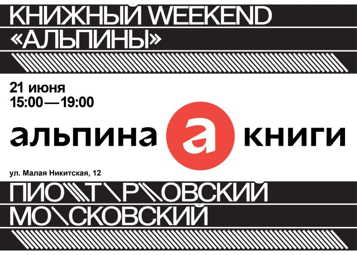 21 июня c 15:00 до 19:00 пройдет книжный weekend «Альпины» в Пиотровском (Малая Никитская, 12