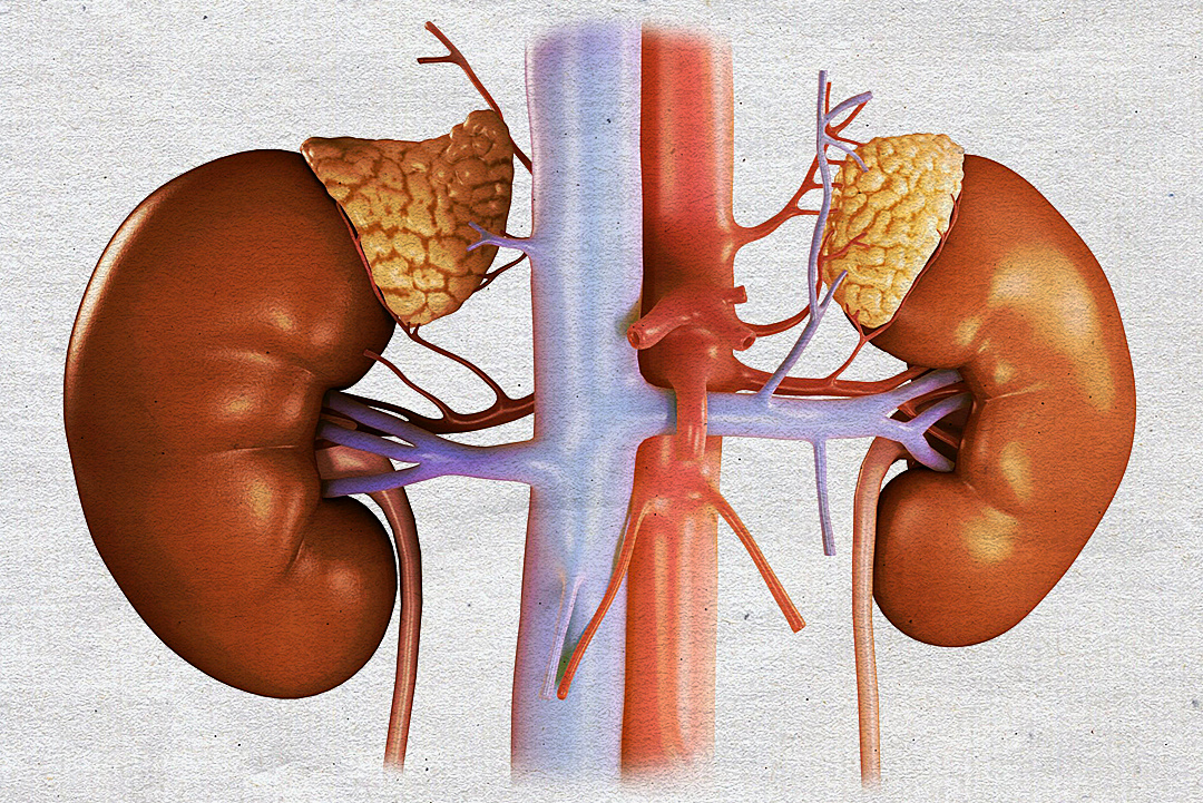 Надпочечники — парные эндокринные железы, расположенные над почками и вырабатывающие гормоны (кортизол, адреналин, альдостерон и половые гормоны), влияющие практически на работу всех систем и органов.