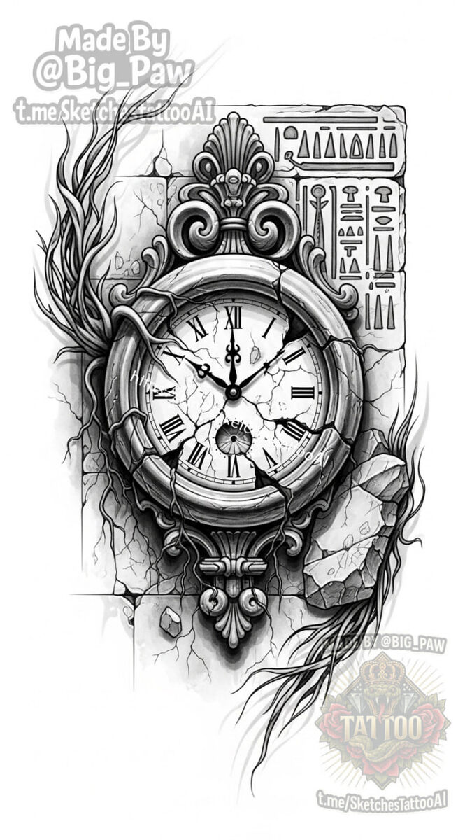 #2536 Подборка по запросу подписчика - подборку на египетскую тематику, но без богов и чтоб там присутствовали, расколотые часы, с циферблатом до 13, природа 😎 С часами до 13 к сожалению никак 🧠 SYNTX 💳 Донат 😎 НейроБро 😎 Эскизы без вотера 💀 Эскизы от нейросети #египет #часы #природа #эскизы #тату #татуировки