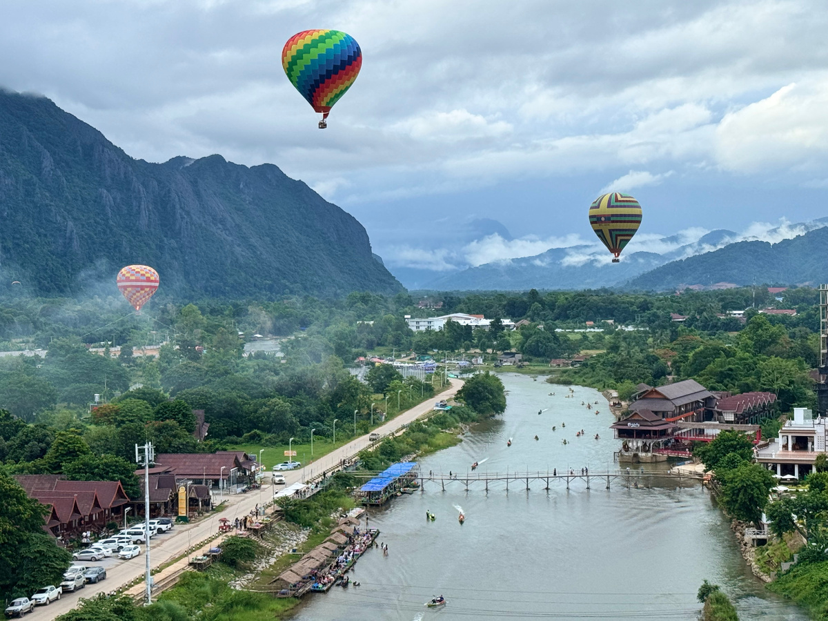 Городок Ванг Вьенг, расположенный между отвесными известняковыми скалами и изумрудными рисовыми полями, долгое время был известен как место для безудержного веселья. Однако в последние годы Ванг Вьенг преобразился и теперь предлагает более спокойный и экологичный отдых, включая каякинг, скалолазание, пешие прогулки и посещение пещер. Так же можно насладиться красивыми рисовыми полями и воздушными шарами над ними. Хочу отметить очень отличную дорогу на Ванг Вьенг, если ехать из Вьентьяна. Дорогая очень ровная, в поездке можно насладиться пейзажами, подумать о будущем и окунуться в воспоминания в тишине и под едва пробивающимися лучами солнца.