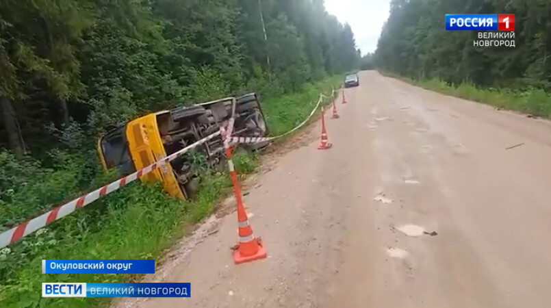 В Окуловском округе автобус с детьми съехал на обочину и опрокинулся на правый борт