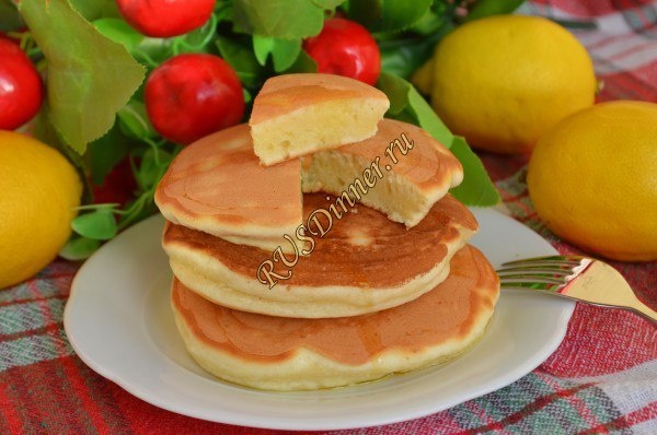 Панкейки на сметане От автора: Панкейки на сметане подаются с сиропом, могут с легкостью заменить наши русские блины. Ингредиенты: Мука - 100 гр. Соль - 1 гр. (щепотка) Разрыхлитель теста - 6 гр. (0,5 ч. л.) Яйцо - 1 шт. Сахар - 40 гр. Сметана - 100 мл. Масло сливочное - 25 гр. (комнатной температуры) Источник: https://rusdinner.ru/page/pankejki-na-smetane